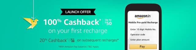 इस ऑफर के तहत कोई भी एमेजॉन का उपभोक्ता पहली बार Amazon की मोबाइल रिचार्ज सेवा का उपयोग करता है तो उसे